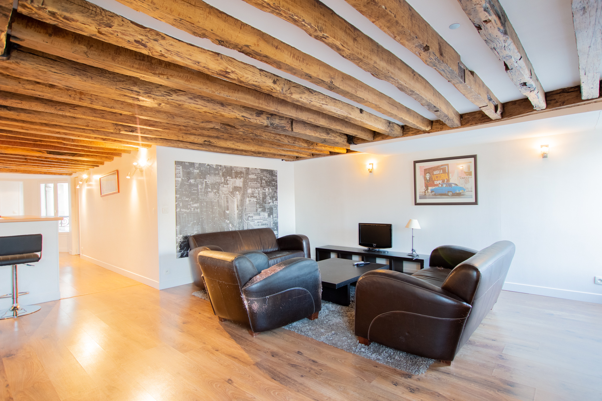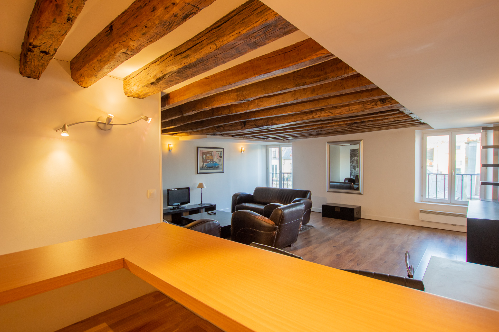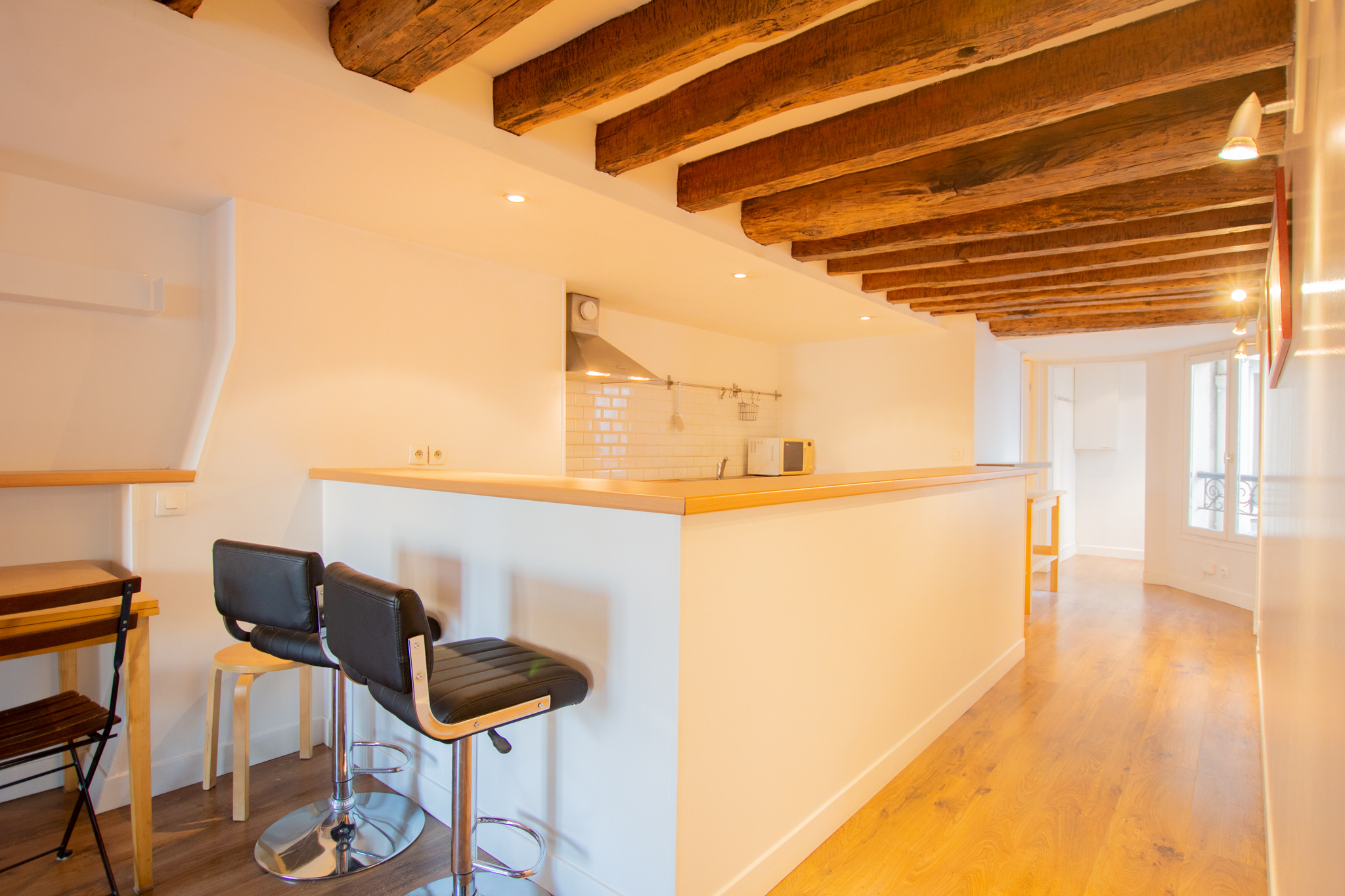 Ce deux pièces dégage un charme unique, caractérisé par ses poutres anciennes qui confèrent à l’espace une atmosphère à la fois élégante et cosy. Ces éléments architecturaux, alliant le cachet de l’ancien et le confort moderne, font de cet appartement un lieu de vie particulièrement attrayant au cœur de la ville.