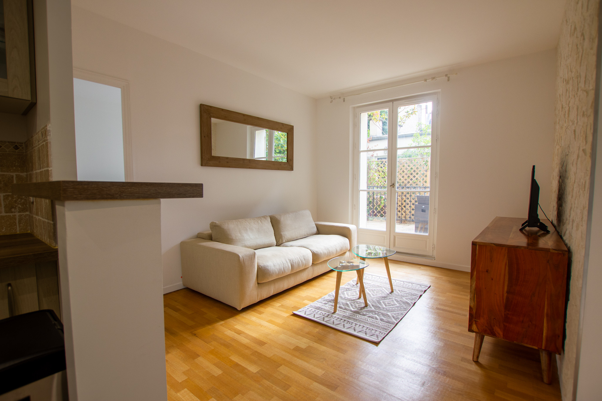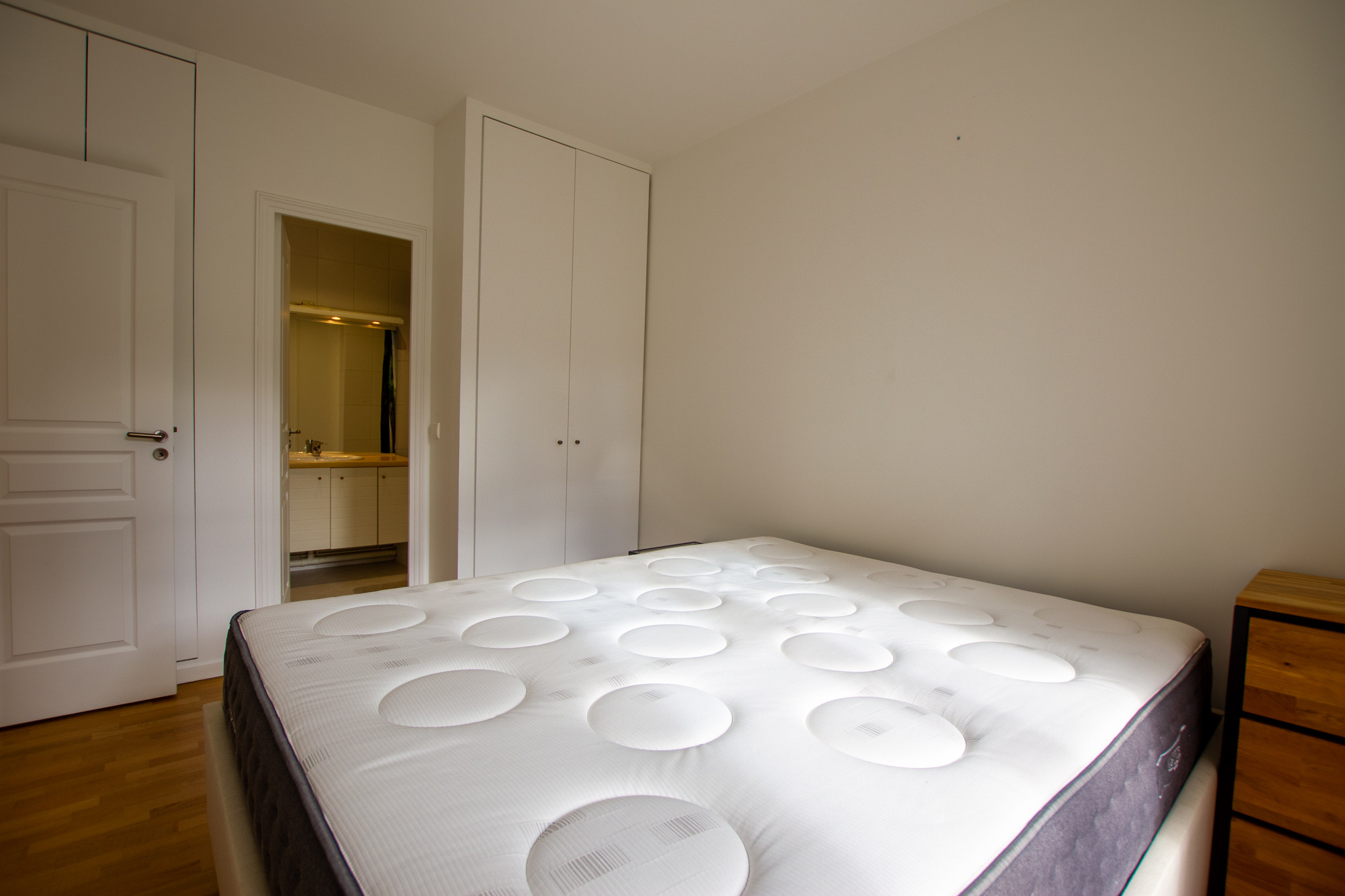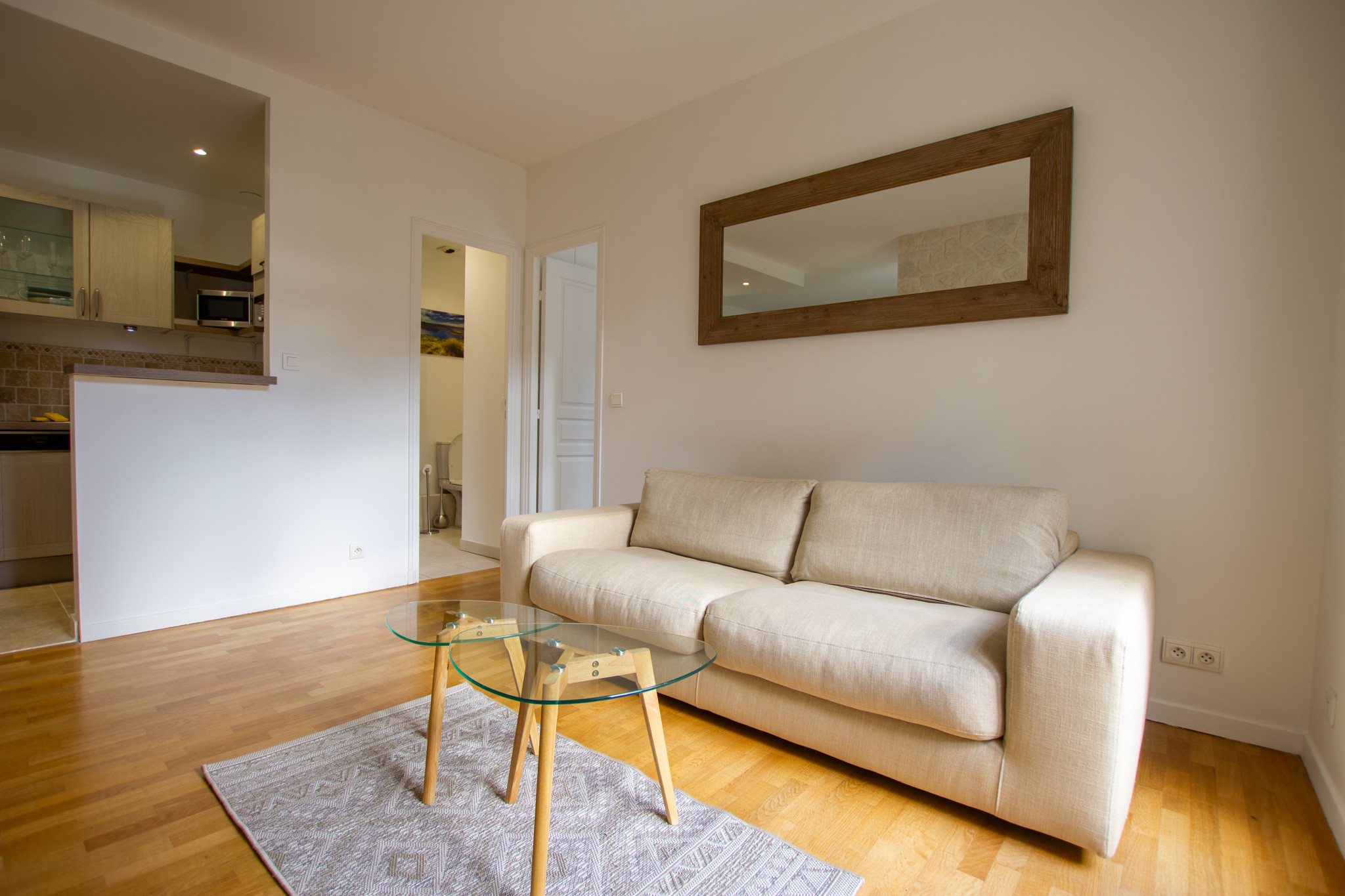 Il se compose d’une entrée, d’un séjour avec une cuisine ouverte (lave vaisselle, hotte, machine à laver le linge, plaque de cuisson induction, four , four à micro onde), d’une chambre avec salle de bains attenante et un WC séparé.